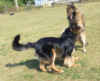 Már régen voltam a szigetszentmiklósi suliban, jó volt újra látni a régi barátokat. Jól ment a fegyelmező, Móni meg is dicsért. Az öv munkán még van mit csiszolni, de az ugatás már megy:-))) A szünetben meg régi barátommal Áfonyával jót játszottam.